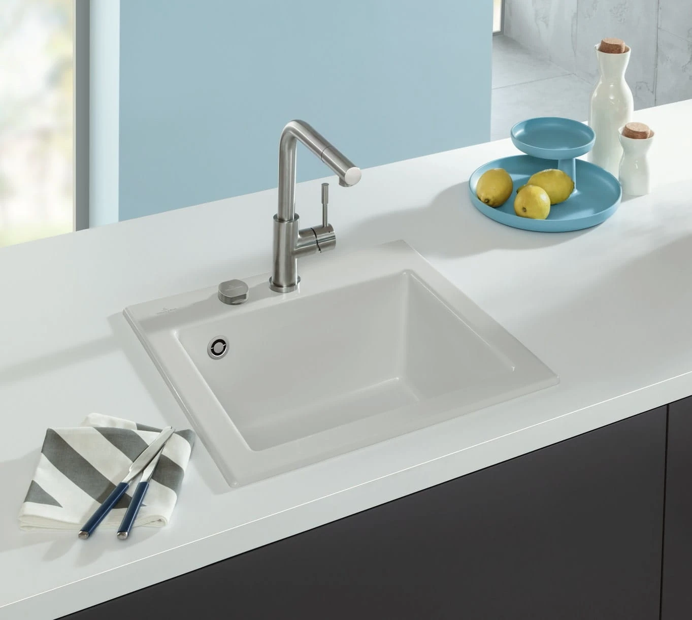 Indywidualny projekt zlewu! Przekonaj się, na ile sposobów baterie zlewozmywakowe firmy Villeroy&Boch są funkcjonalne. Inteligentne detale umożliwiają oszczędzanie wody i energii. Ale także dzięki zaletom optycznym przekonują do ich zakupu. Dostępnych jest wiele modeli o doskonałej linii w różnych wersjach kolorystycznych odpornych na promienie słoneczne.
