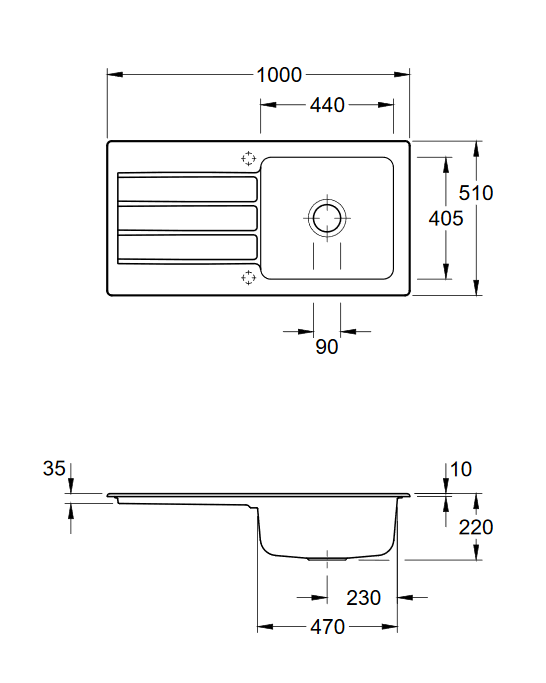 - Długość zlewozmywaka kuchennego: 1000 [mm]