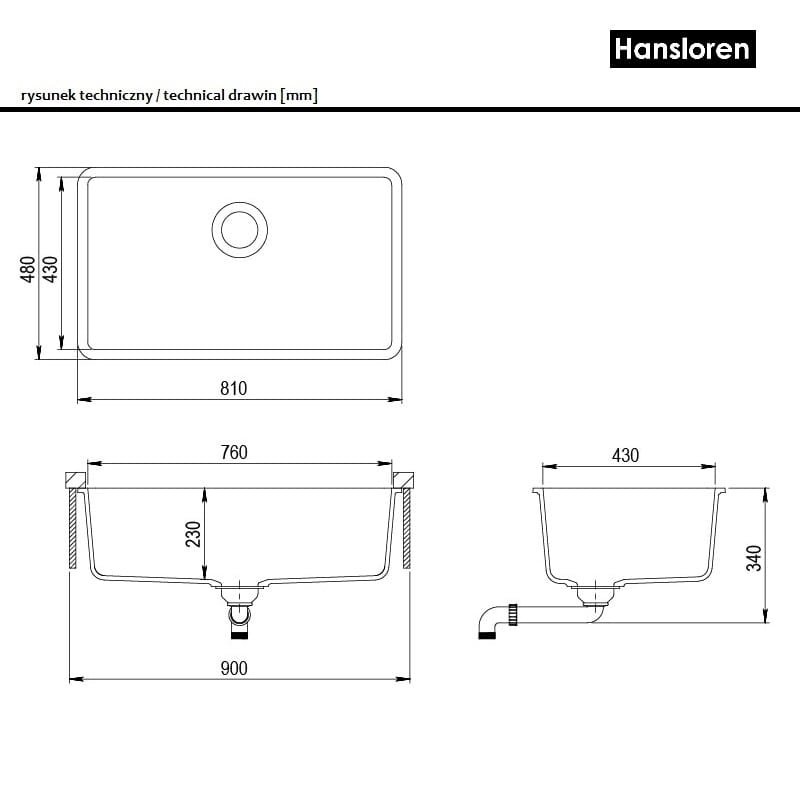 Producent HanslorenBianco Hansloren zlewozmywak konglomeratowy podwieszany 810x480 biały - B8BO-3PMB