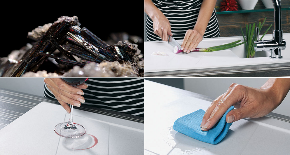 Materiał składający się w 85% z kwarcu oraz 15% z żywic akrylowych. Cechuje go duża wytrzymałość na temperaturę i ścieralność. Bardzo gładka powierzchnia utrudnia osadzanie się nieczystości.
