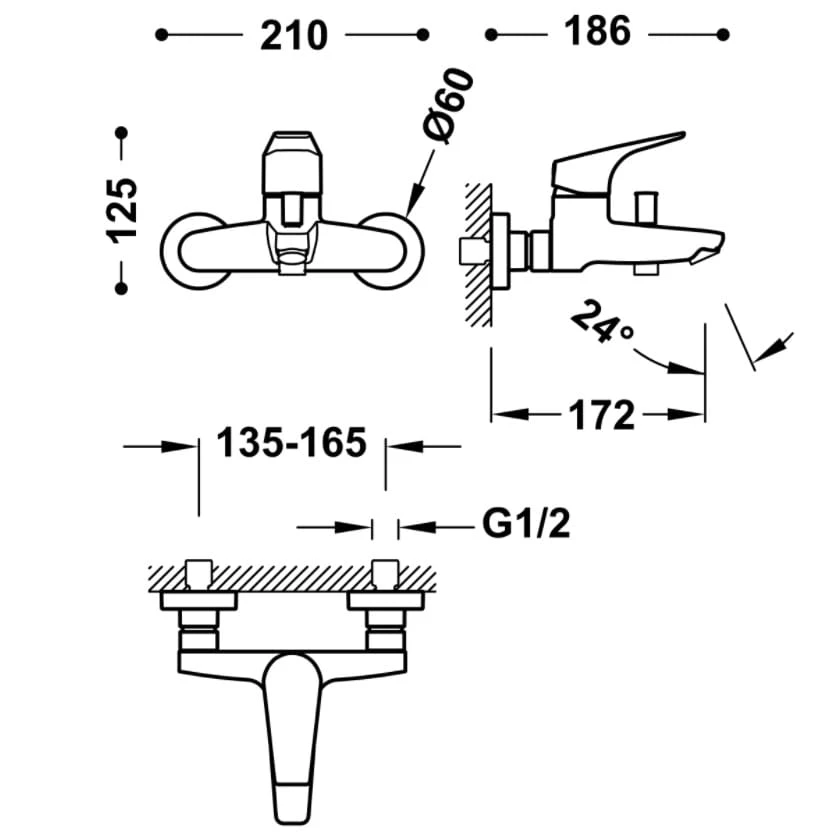 Canigo Tres bateria wannowa z zestawem natryskowym jednopunktowym chrom – 217.170.01