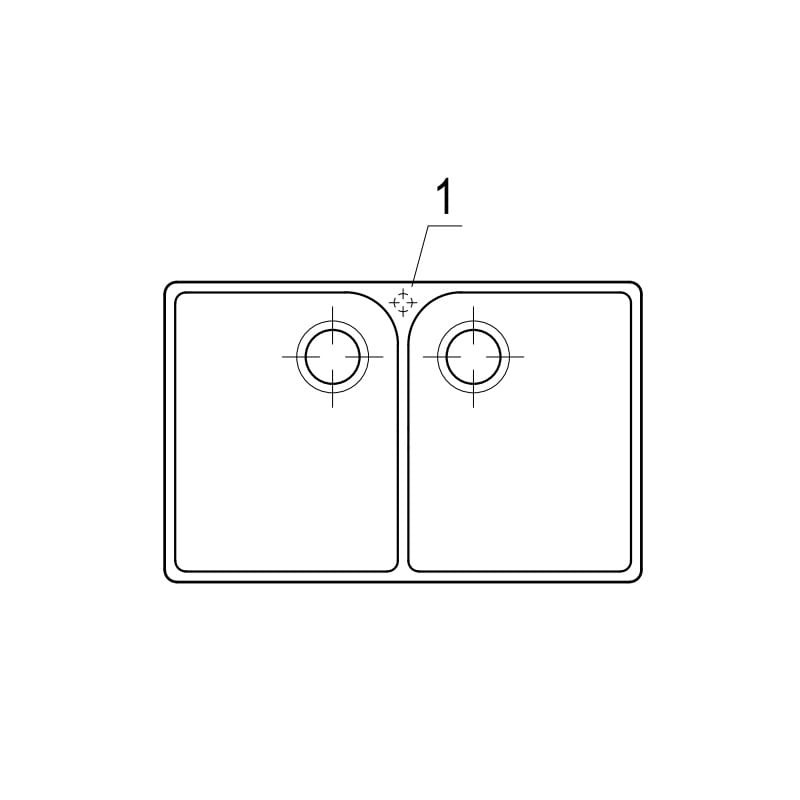 Armatura odpływowo-przelewowa z korkiem manualnym w obu komorach. Zlewozmywak jest dostarczany ze standardowymi sitkami. Pokrywy capcover widoczne na zdjęciu nie są elementem wyposażenia.