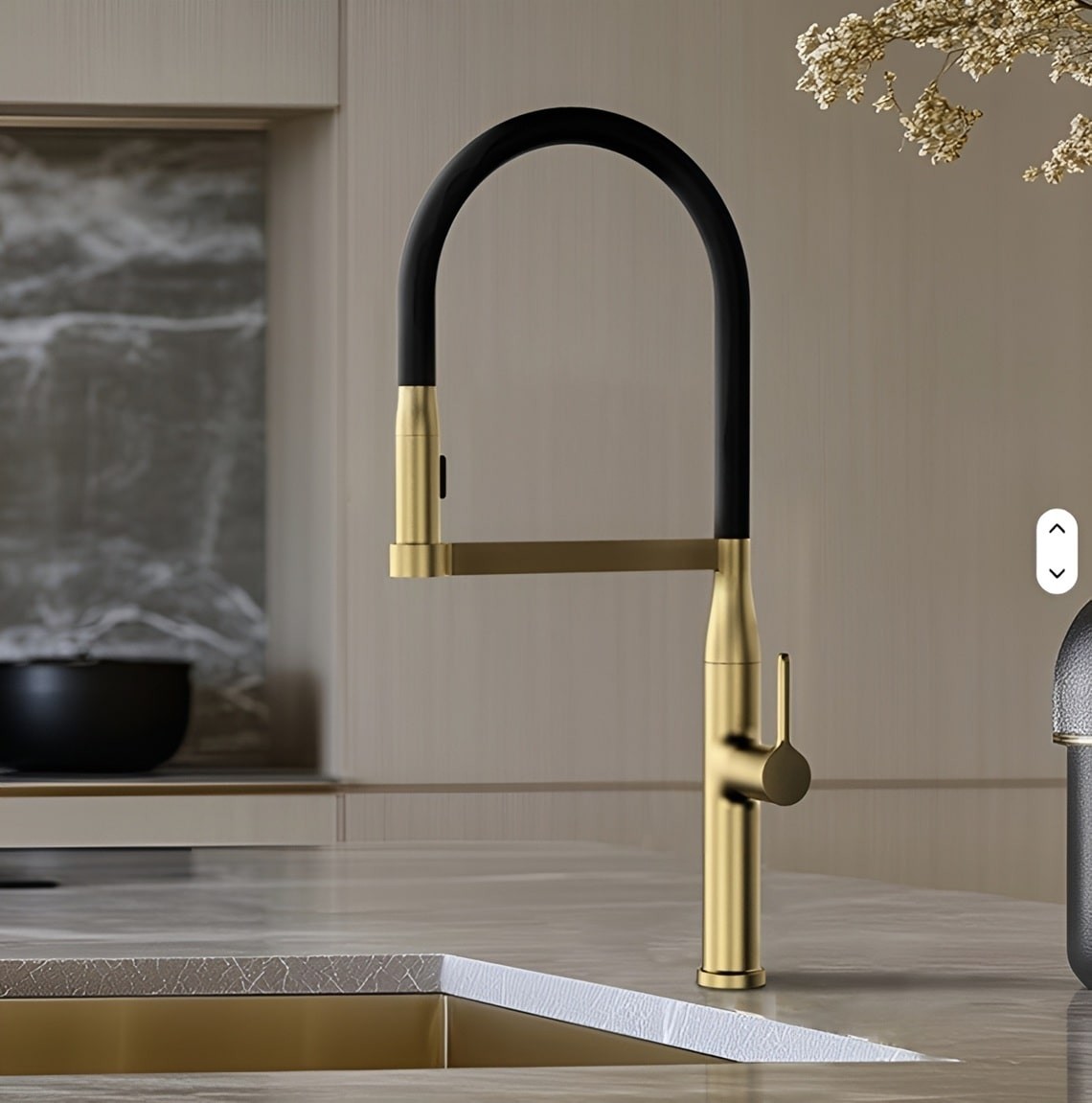 - Elastyczna wylewka na gumowym wężu zapewnia optymalny zakres ruchu.
