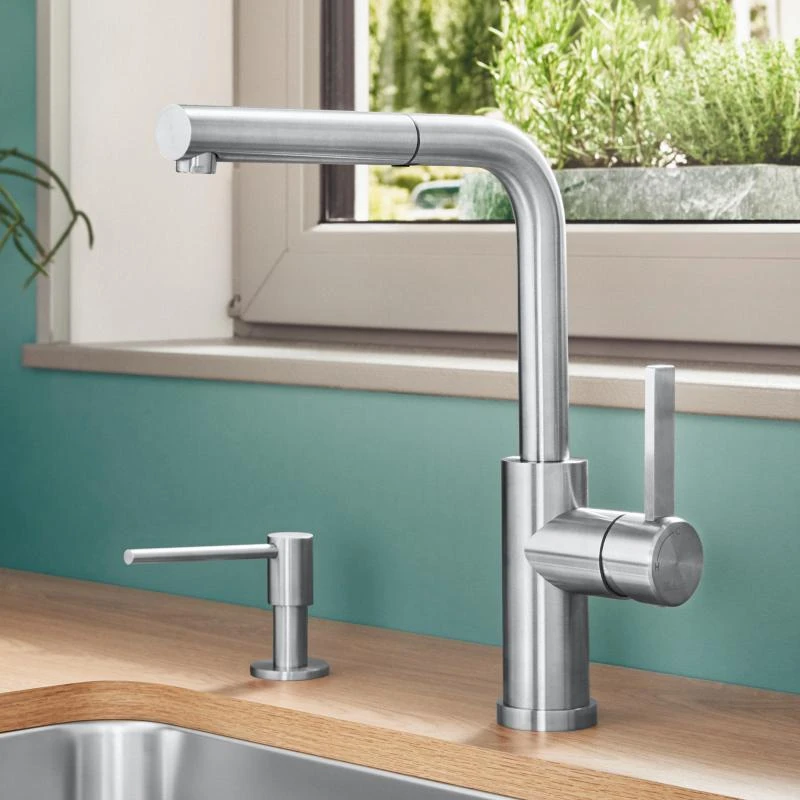 Materiał: Wylewka wykonana ze stali szlachetnej, powierzchnia szczotkowana