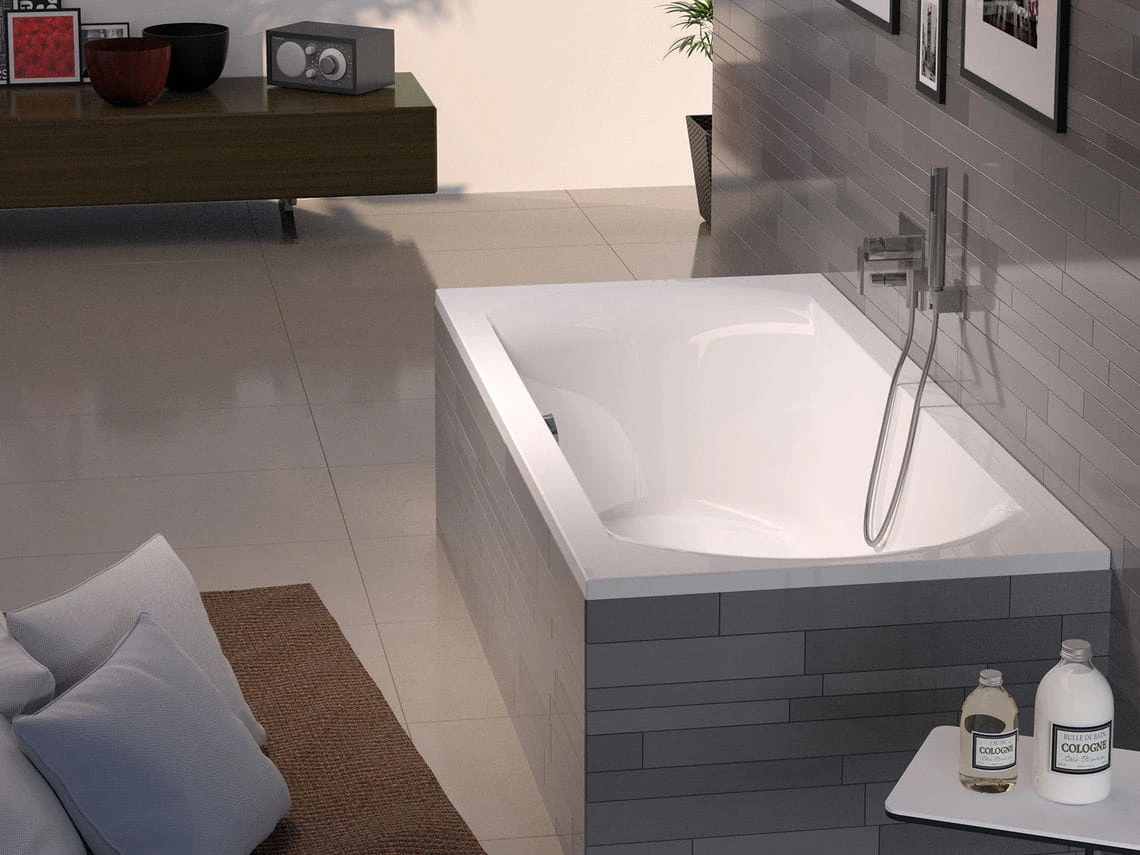 Prostokątna wanna do zabudowy. Dostępna w 6 rozmiarach – 150 cm, 160 cm, 170 cm, 180 cm, 190 cm, 200 cm.
