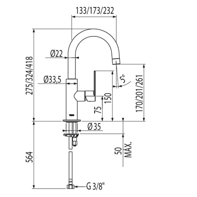 - zasięg wylewki 133 mm