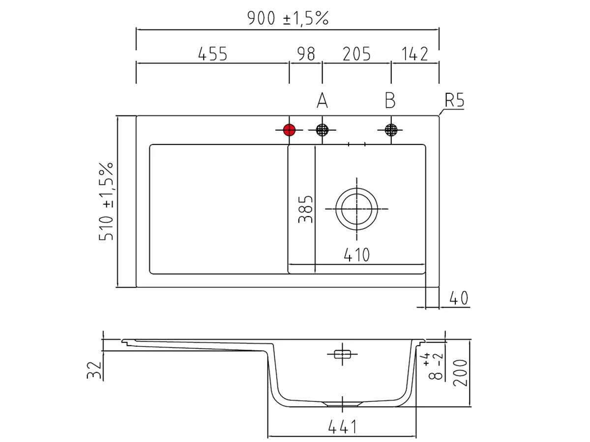 Mera 90 Systemceram zlew ceramiczny 510x900 prawy magnolia - 50740110