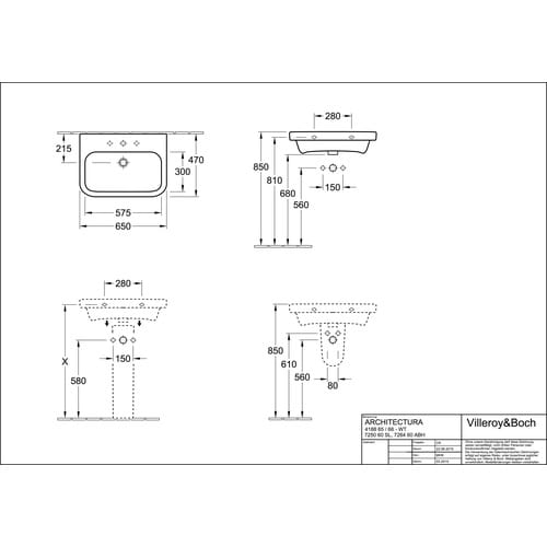Architectura Villeroy&Boch umywalka prostokątna 650x470mm white alpin Ceramicplus – 4188 KG R1