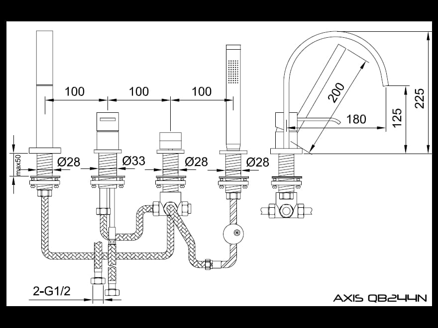 Axis Kohlman bateria wannowa czterootworowa chrom - QB244N