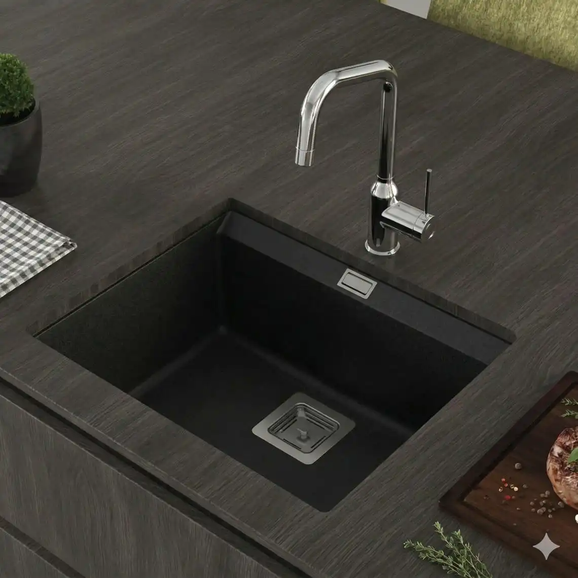 Delicja Hansloren zlewozmywak konglomeratowy podwieszany 555x455 czarny - DECO-1PMB