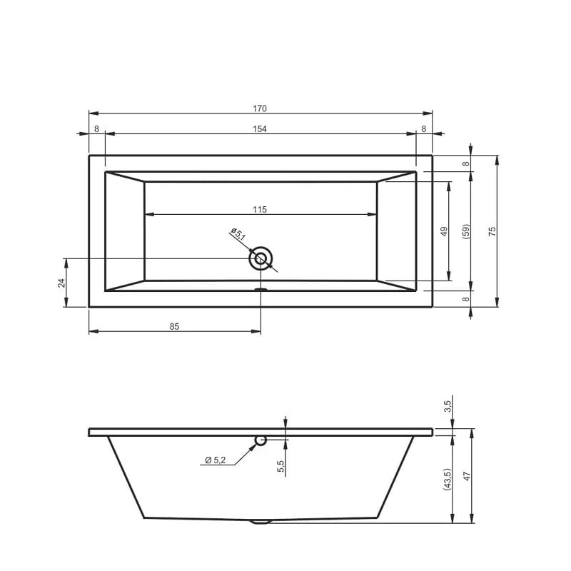 Lusso Riho wanna prostokątna 160x70 akrylowa - B013001005