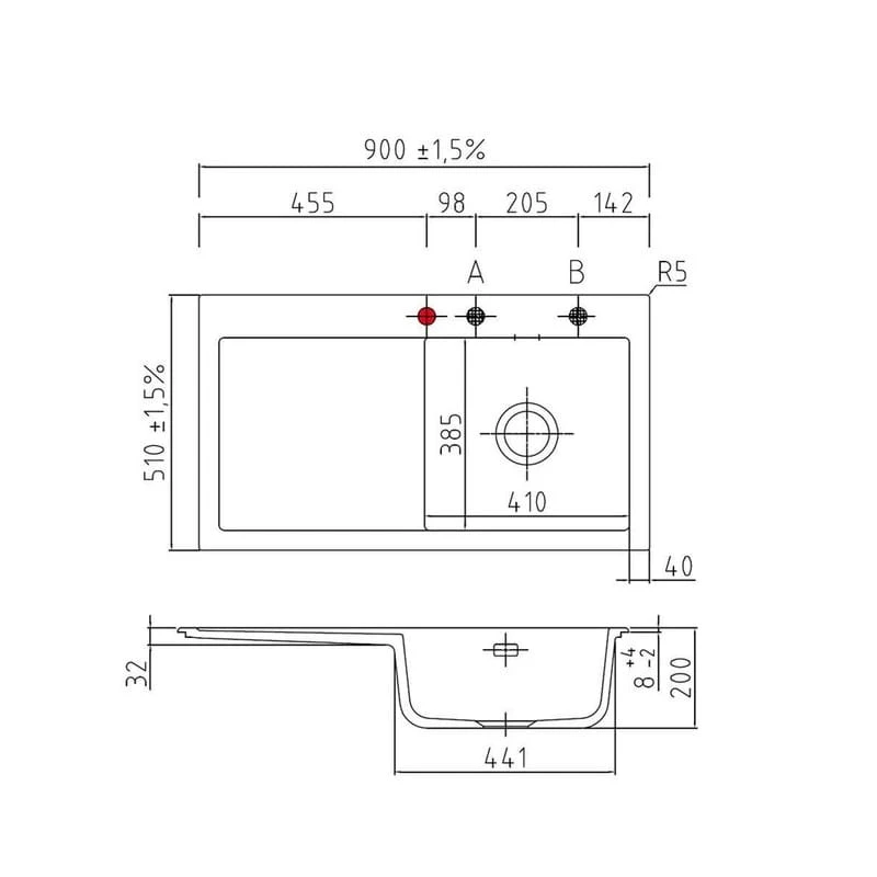 Mera 90 Systemceram zlewozmywak ceramiczny 510x900 lewy gronland - 50750112