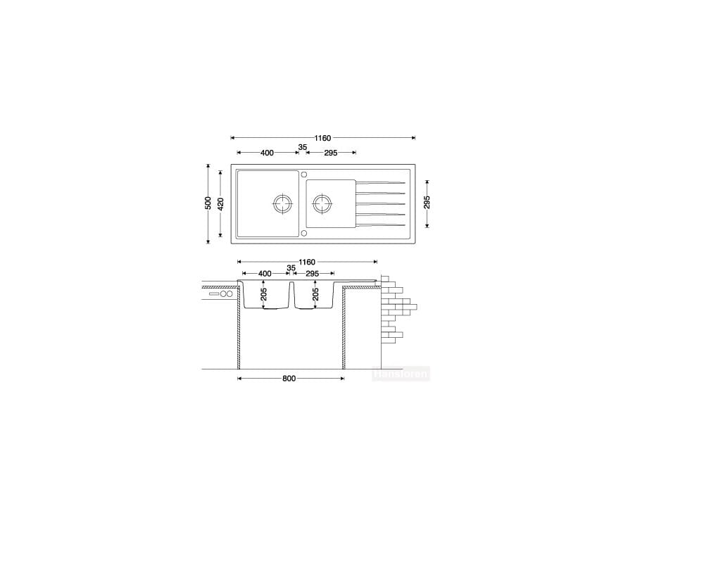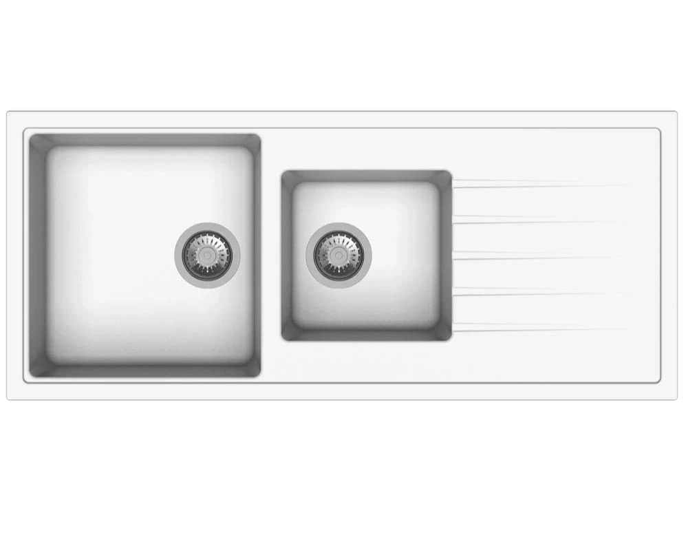 Polka Hansloren zlew granitowy 2 komory z ociekaczem 500x1160 biały - POBO-3WMD