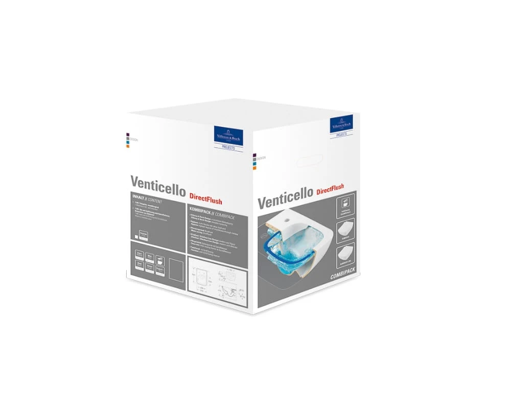 Venticello V&B Combi-Pack miska WC podwieszana DirectFlush z deską sedesową SlimSeat Line wolnoopadającą odpływ poziomy white alpin - 4611RL01