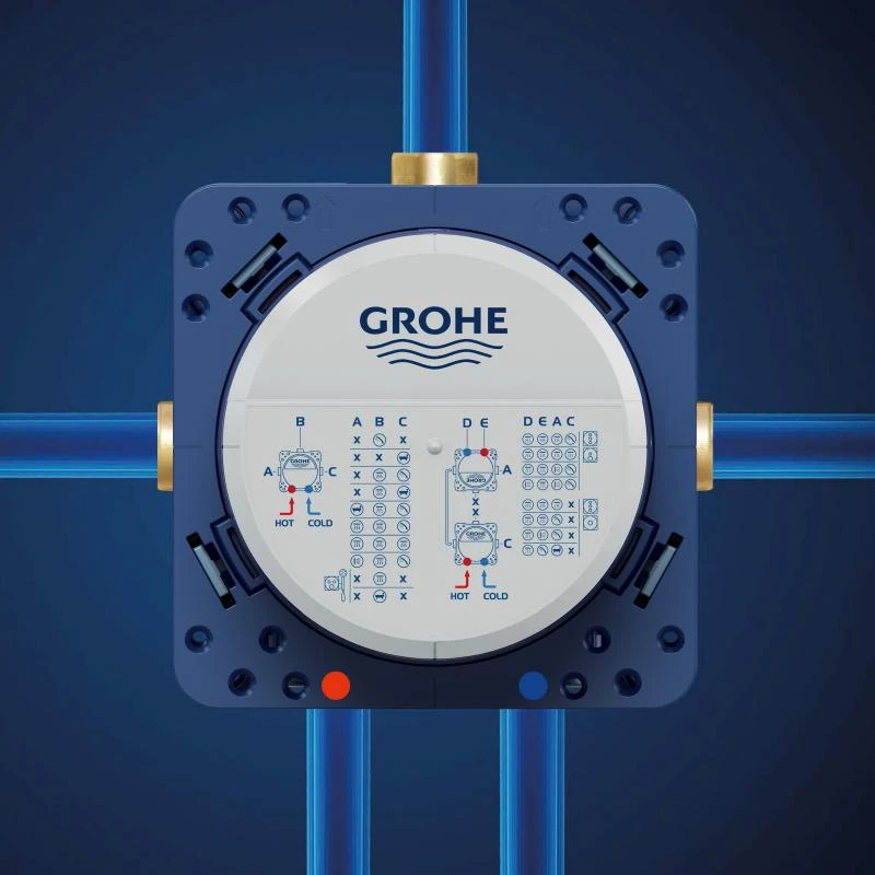 Bądź optymalnie wyposażony – z Grohe! Twoja wanna lub prysznic są naprawdę kompletne tylko dzięki uniwersalnej jednostce podtynkowej Rapido SmartBox firmy Grohe.