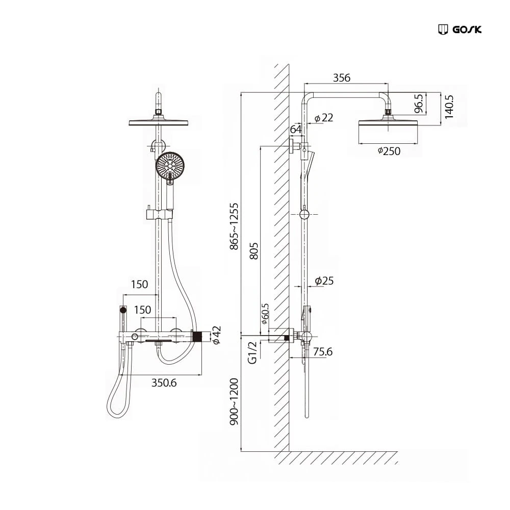 Soul Gosk kolumna prysznicowa z deszczownicą chrom - SOCR-0001