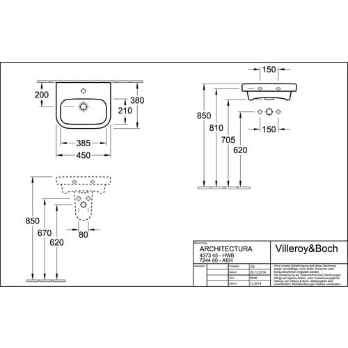 Architectura V&B umywalka mała prostokątna 450x380mm white alpin - 4373 45 01