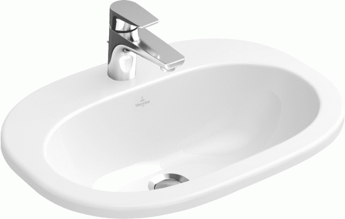 O.novo V&B Umywalka nablatowa owalna wybity środkowy otwór pod armaturę z przelewem 560 x 405 mm white alpin Ceramicplus - 416156R1