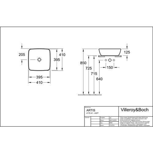 Artis V&B umywalka na blacie prostokątna bez miejsca na armaturę 410x410mm white alpin Ceramicplus - 4178 41 R1