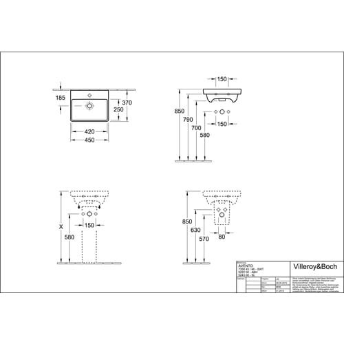 Architectura V&B umywalka mała prostokątna 450x380mm white alpin - 4373 45 01
