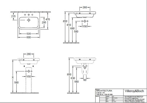 Architectura V&B umywalka ceramiczna 600x400 white alpin - 41276001