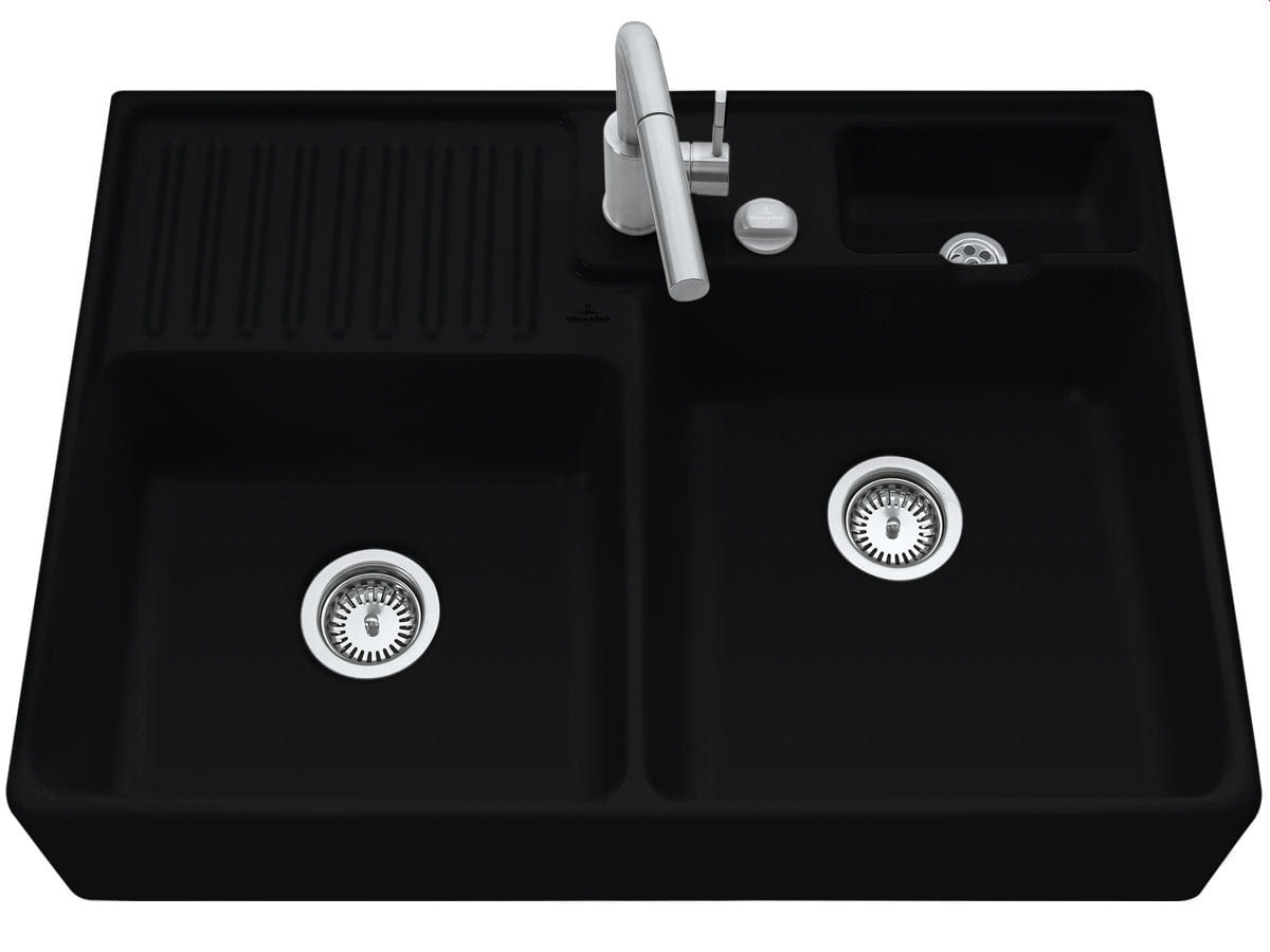Producent Villeroy&BochZlew ceramiczny modułowy V&B Classicline dwukomorowy kuchenny 90 KA graphite - 6323 92 I4